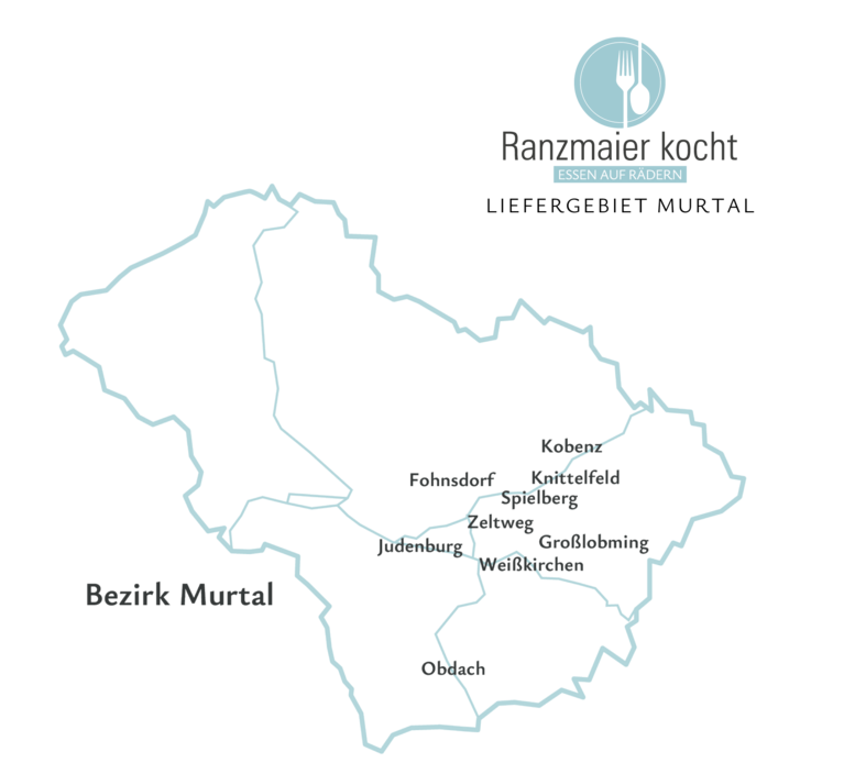 Unser Lieferservice ist im GESAMTEN MURTAL verfügbar. Ausgehend von Zeltweg beliefern wir zuverlässig die Gemeinden Weißkirchen, Obdach, Judenburg, Fohnsdorf, Spielberg, Großlobming, Knittelfeld, St. Margarethen bei Knittelfeld, Kobenz. So stellen wir sicher, dass unsere frisch gekochten Menüs regional, pünktlich und direkt zu Ihnen nach Hause gelangen.